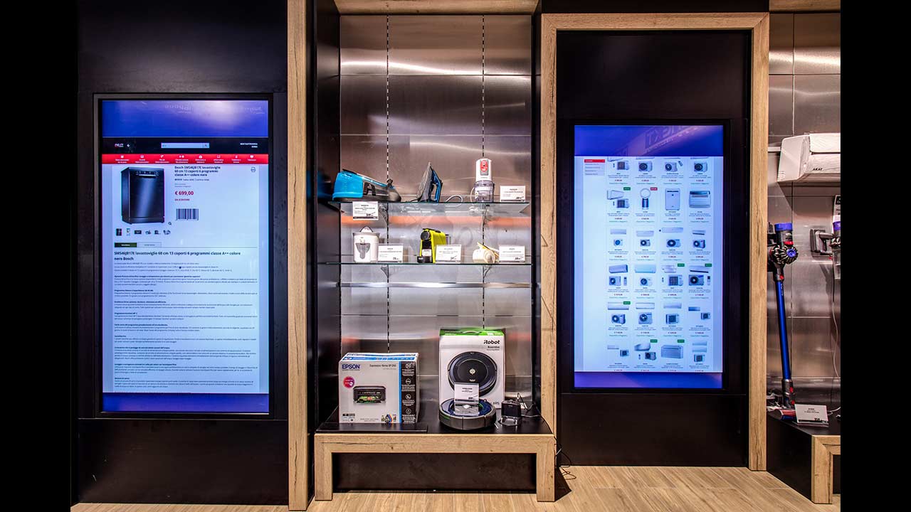 Economically, the Digital Store increase the possibility to sale the product for many reasons: First of all Space, thanks the digital store, in a small space we can have more than 25.000 products at the same time; Sales Person don’t need to be update to the last product using their memories, they have an power tool for searching every products and every details of this product in a super quick way (a kind of big ultra interactive brochure all day updated); Client can interact alone and searching the product he need, whit the full help of the sales people which are present on place ready to answer all his questions; Client don’t need to store products inside the store, and can offer a large quantity of products, especially the large size ones (for ex fridge in all colors and variation, etc.)